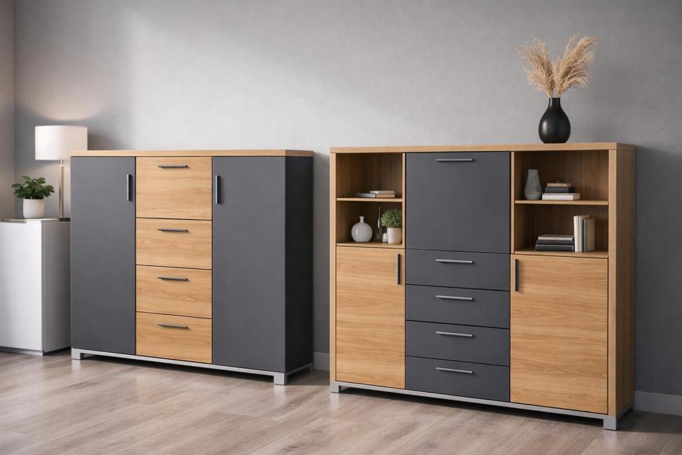 Oferujemy meble sypialne w zestawach: szafa, łóżko, toaletka, komoda. Istnieje możliwość doboru osobnych elementów.