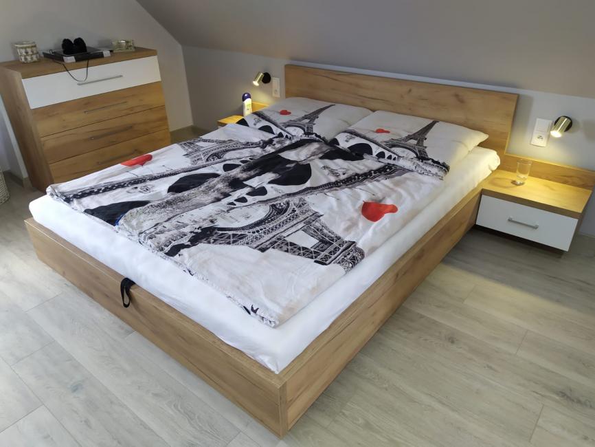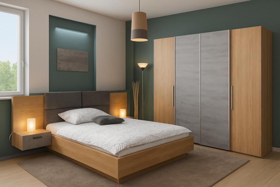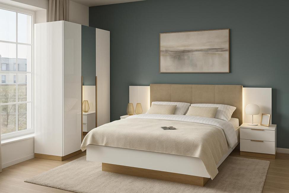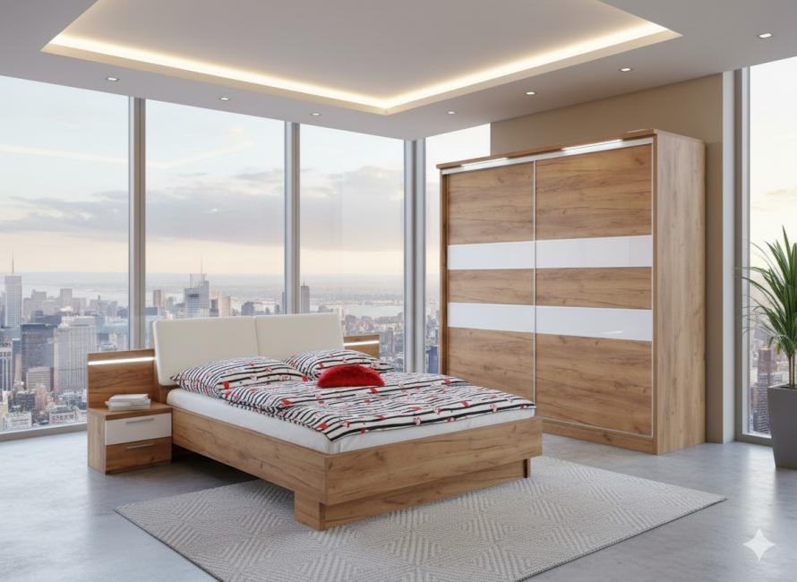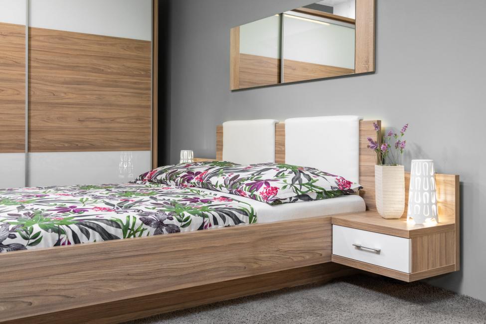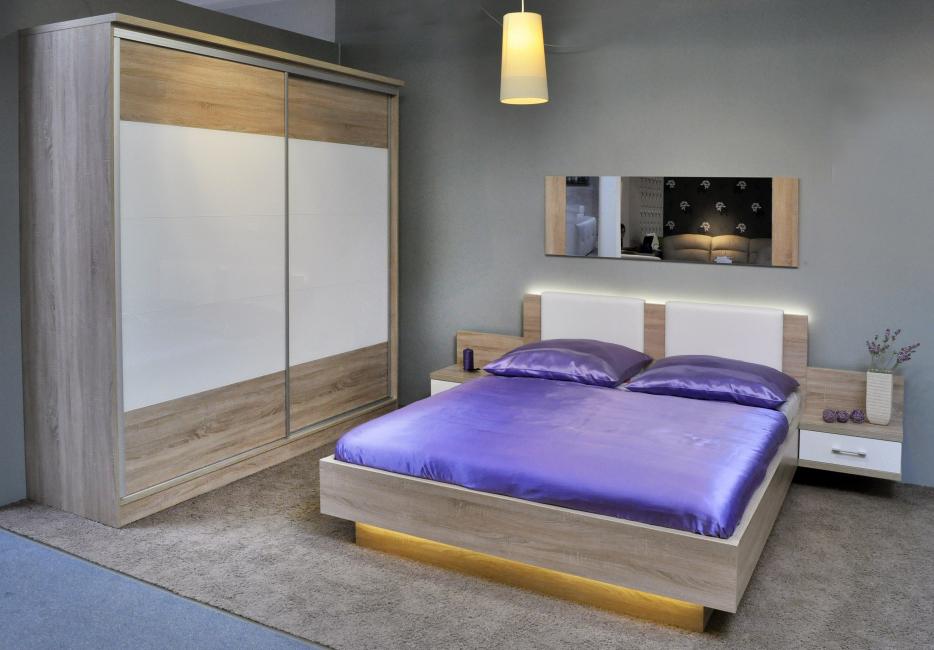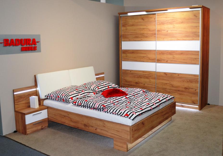Oferujemy meble sypialne w zestawach: szafa, łóżko, toaletka, komoda. Istnieje możliwość doboru osobnych elementów.