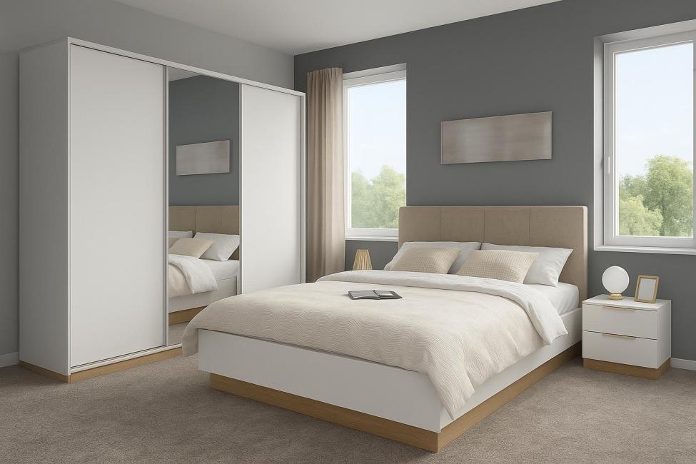 Oferujemy meble sypialne w zestawach: szafa, łóżko, toaletka, komoda. Istnieje możliwość doboru osobnych elementów.